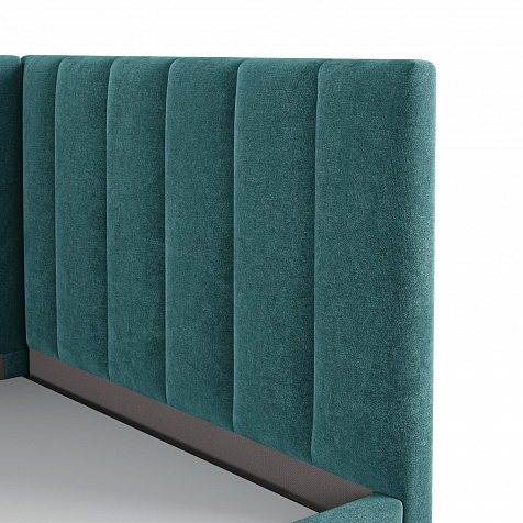 Односпальная кровать «Трино» — сочетание уюта и комфорта в современном дизайне. Спинка Г-образной формы в мягком велюре украшена декоративной вертикальной стежкой, что станет акцентом в интерьере подростковой комнаты.