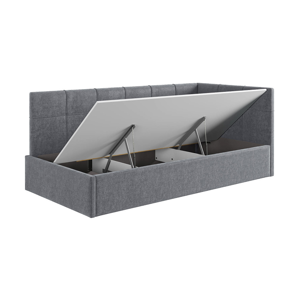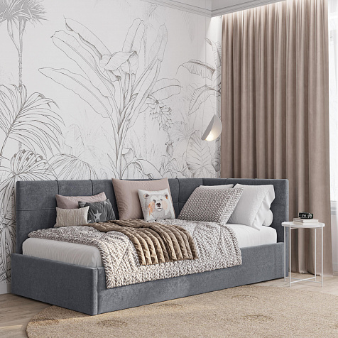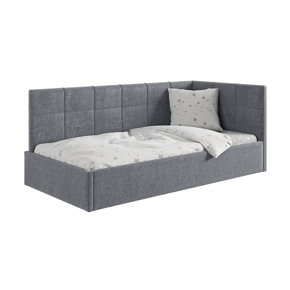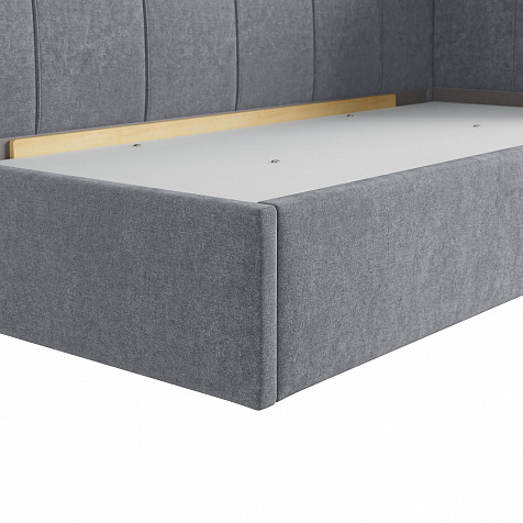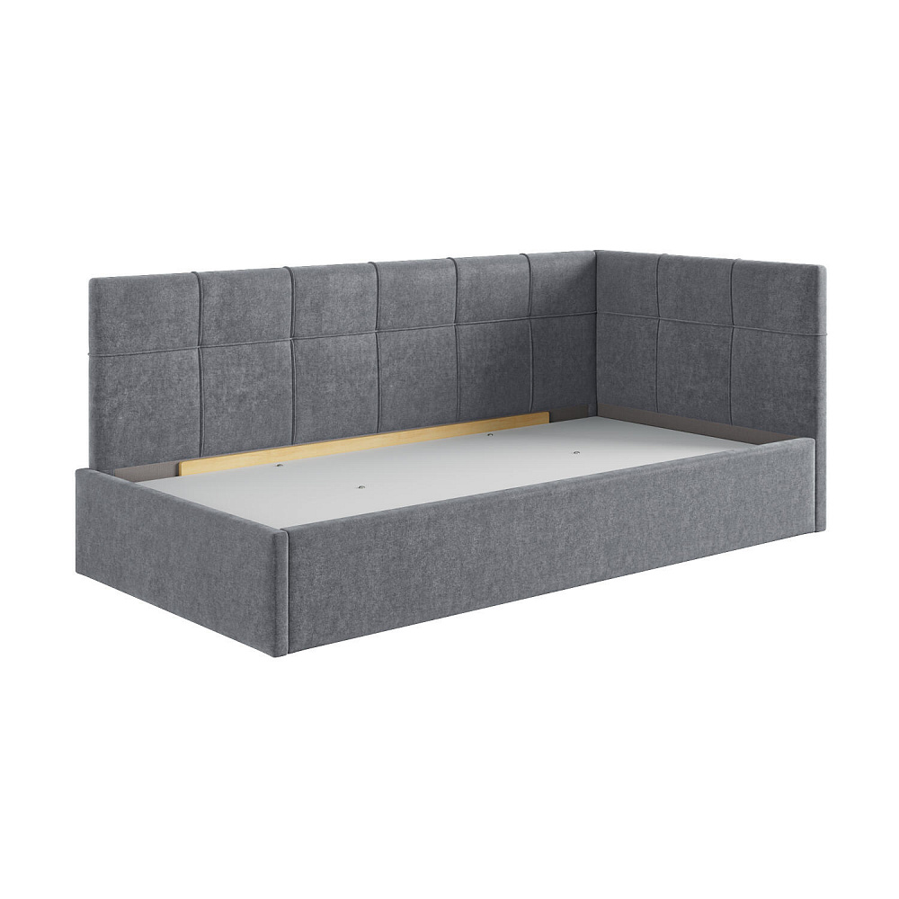Односпальная кровать «Мидо» — сочетание уюта и комфорта в современном дизайне. Спинка Г-образной формы в мягком велюре украшена декоративной стежкой в виде прямоугольников, что станет акцентом в интерьере подростковой комнаты.