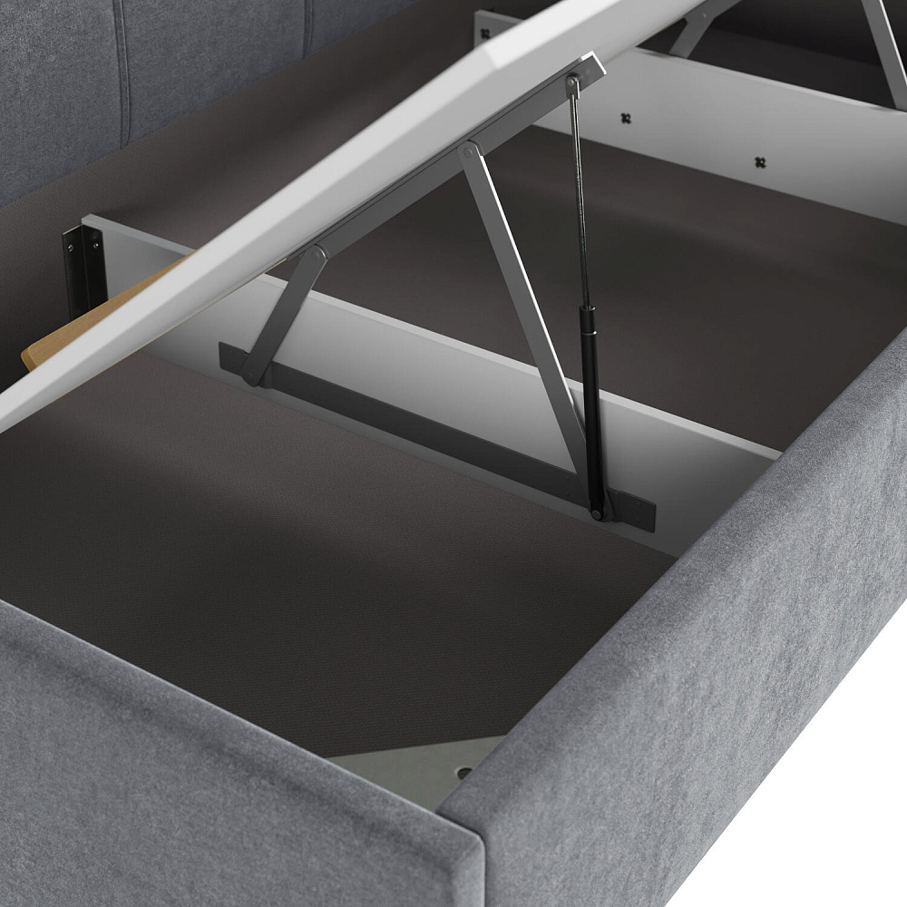 - Удобный доступ к коробу. Подъёмный механизм легко поднимает и опускает основание кровати вместе с матрасом.