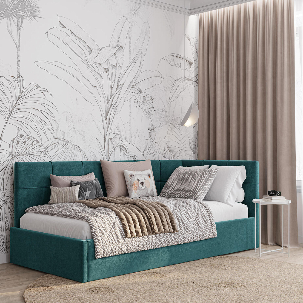 Односпальная кровать «Мидо» — сочетание уюта и комфорта в современном дизайне. Спинка Г-образной формы в мягком велюре украшена декоративной стежкой в виде прямоугольников, что станет акцентом в интерьере подростковой комнаты.