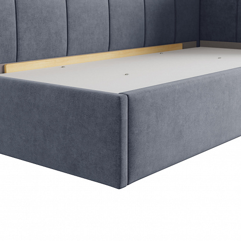 Односпальная кровать «Мидо» — сочетание уюта и комфорта в современном дизайне. Спинка Г-образной формы в мягком велюре украшена декоративной стежкой в виде прямоугольников, что станет акцентом в интерьере подростковой комнаты.