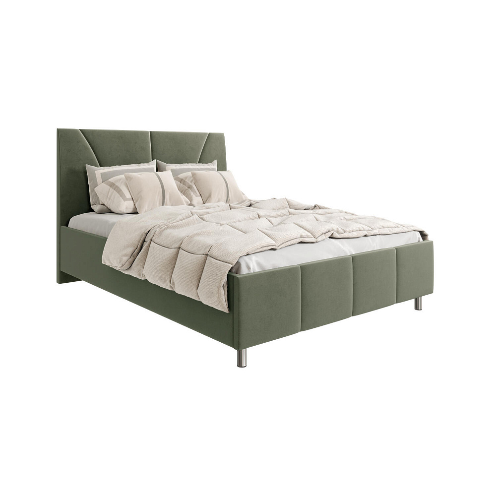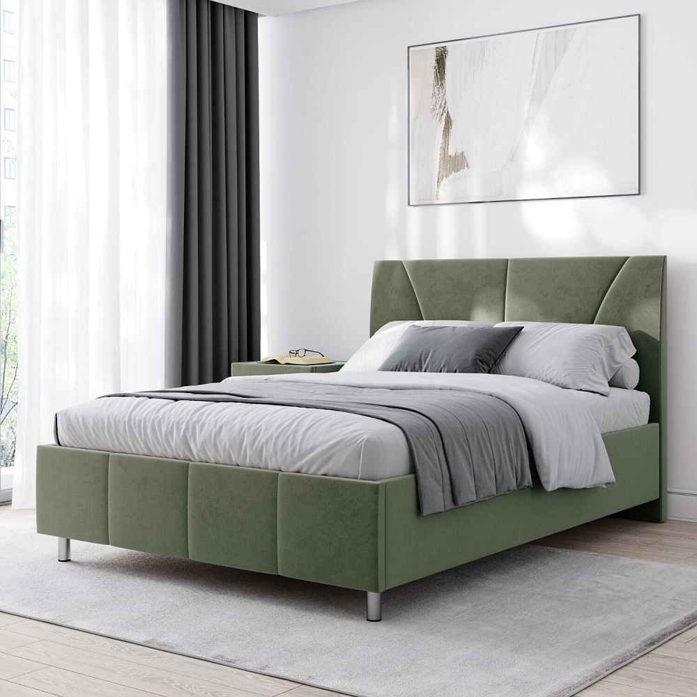 Мягкая кровать «Каролина» для тех, кому важен здоровый сон и эстетичный вид мебели. Дизайн отличается диагональными и прямыми строчками и слегка изогнутым изголовьем. Возвышение на ножках добавит в интерьер динамики и лёгкости. Кровать также поможет сэкономить пространство квартиры благодаря вместительному бельевому коробу под решёткой.
