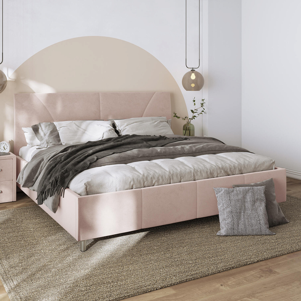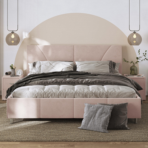 Мягкая кровать «Каролина» для тех, кому важен здоровый сон и эстетичный вид мебели. Дизайн отличается диагональными и прямыми строчками и слегка изогнутым изголовьем. Возвышение на ножках добавит в интерьер динамики и лёгкости. Кровать также поможет сэкономить пространство квартиры благодаря вместительному бельевому коробу под решёткой.