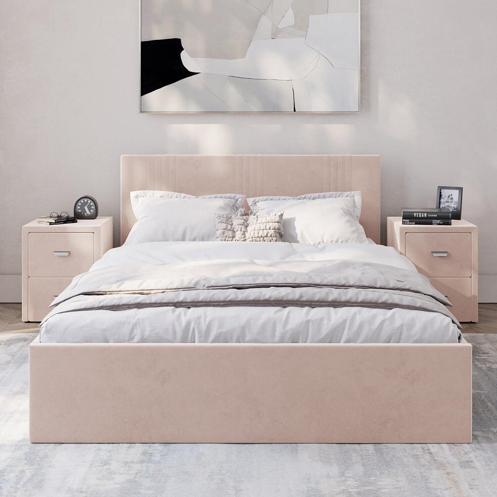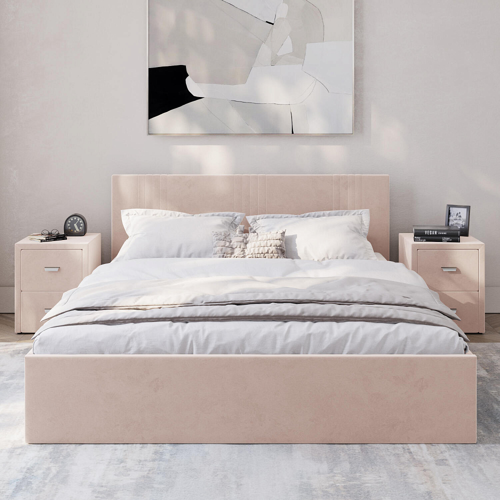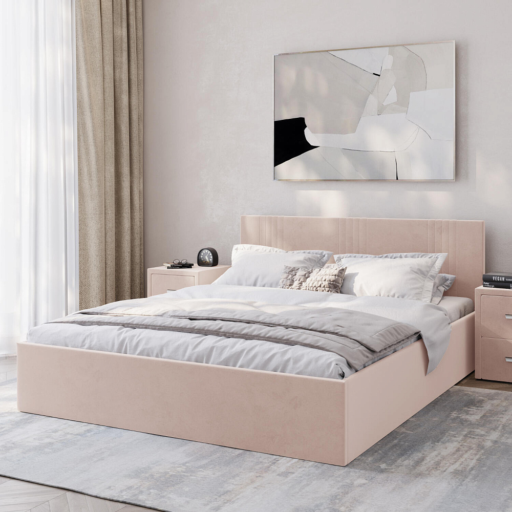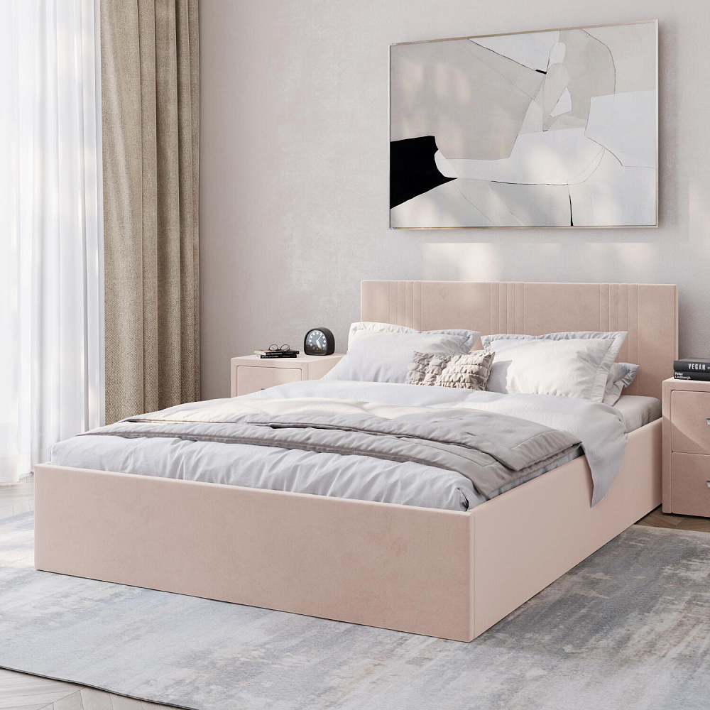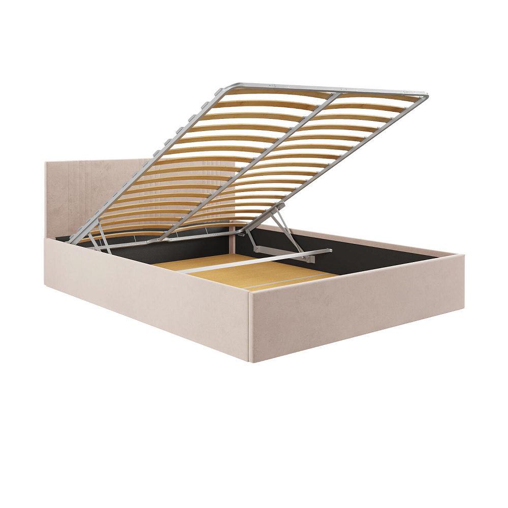 Кровать «Элис» выполнена в мягкой обивке из практичного и износостойкого велюра. Прямая спинка украшена декоративной стежкой, добавляющей стиля и динамики в интерьер. Особо прочный бельевой ящик позволит хранить в кровати даже самые тяжелые предметы и вещи. Надёжное основание и анатомическая решётка на подъёмных газлифтах обеспечат оптимальный уровень комфорта во время сна.