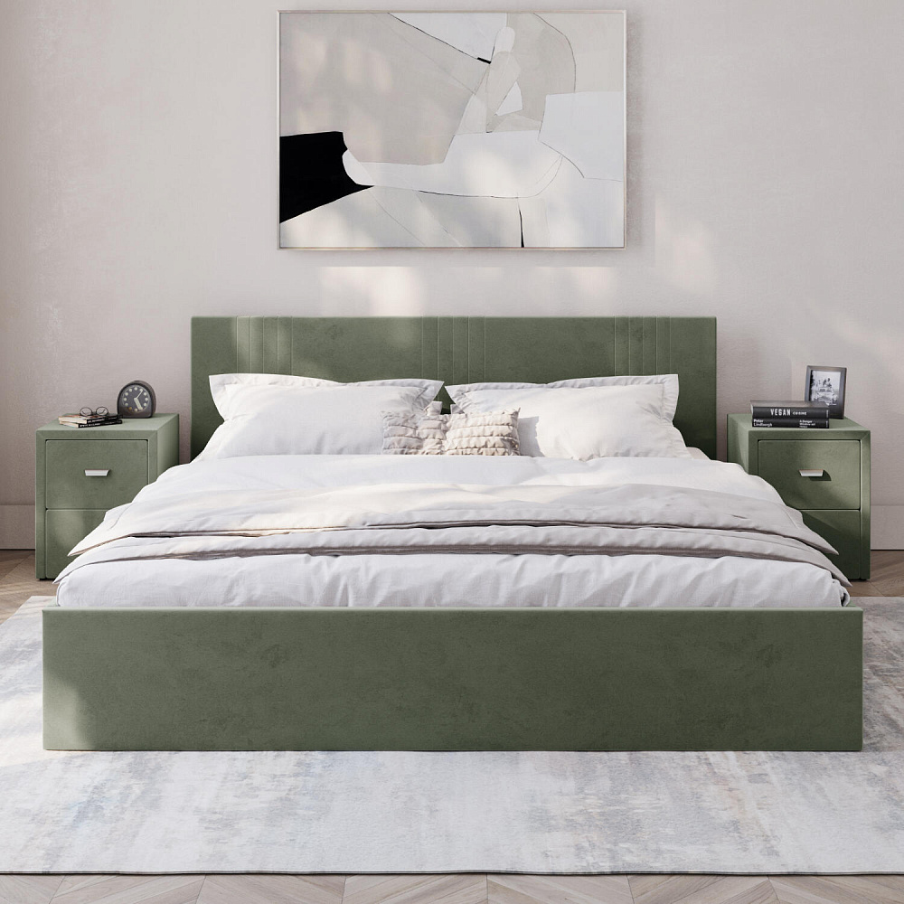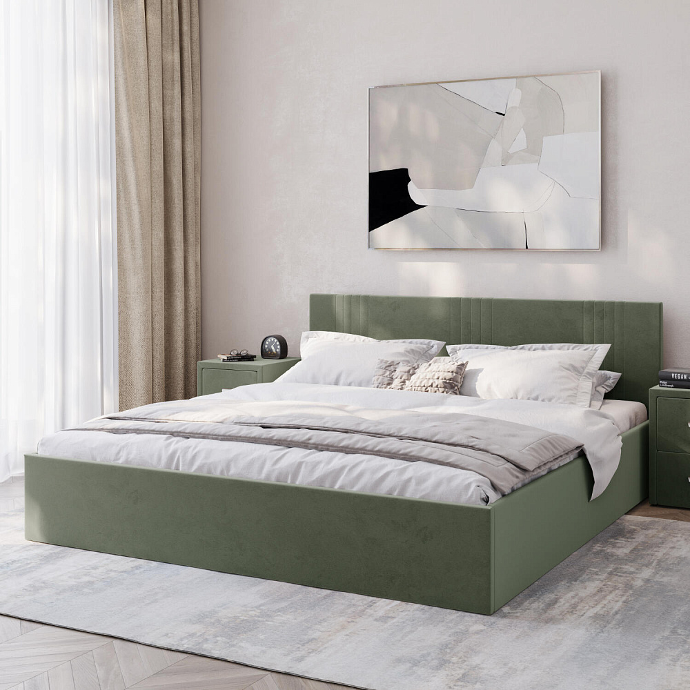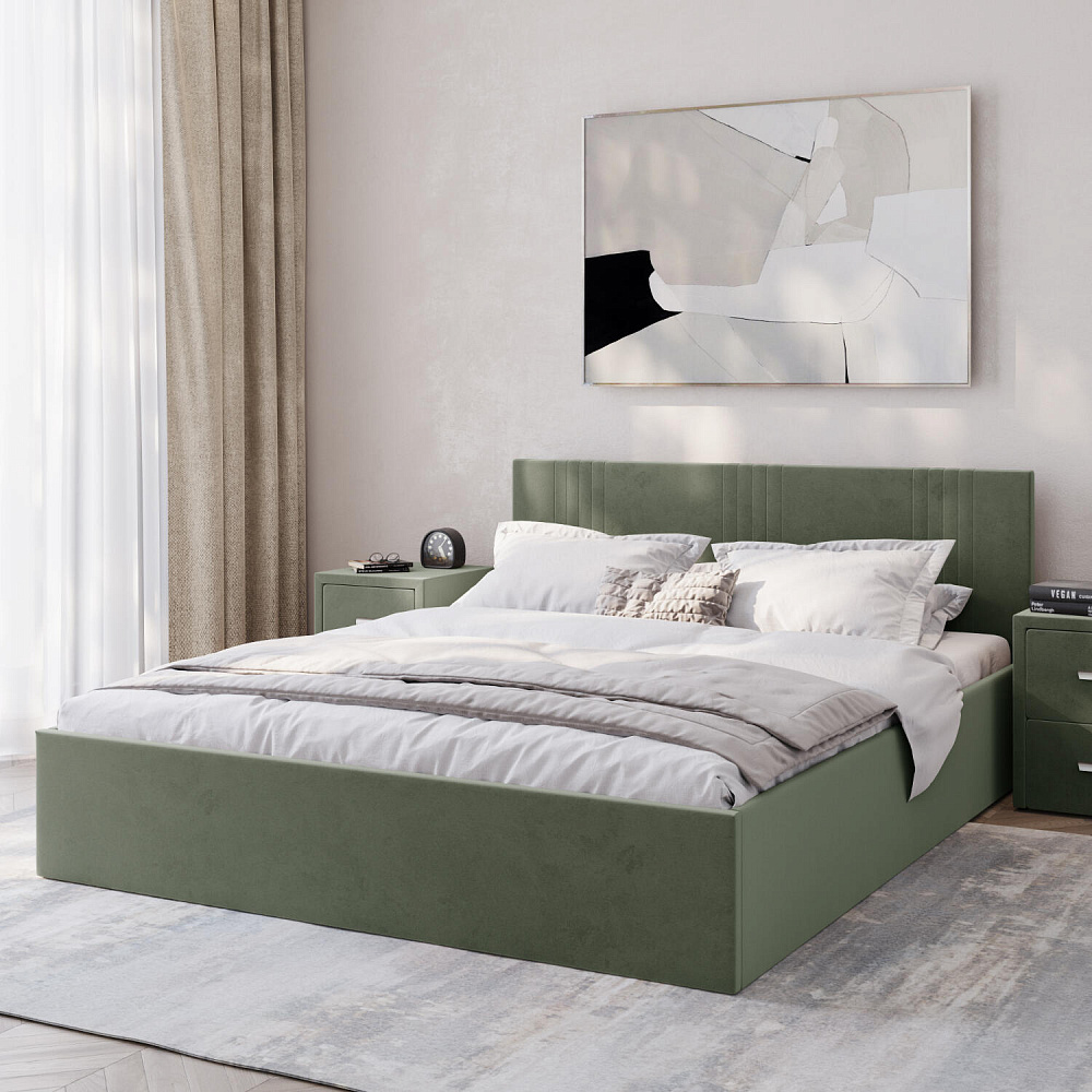 Кровать «Элис» выполнена в мягкой обивке из практичного и износостойкого велюра. Прямая спинка украшена декоративной стежкой, добавляющей стиля и динамики в интерьер. Особо прочный бельевой ящик позволит хранить в кровати даже самые тяжелые предметы и вещи. Надёжное основание и анатомическая решётка на подъёмных газлифтах обеспечат оптимальный уровень комфорта во время сна.
