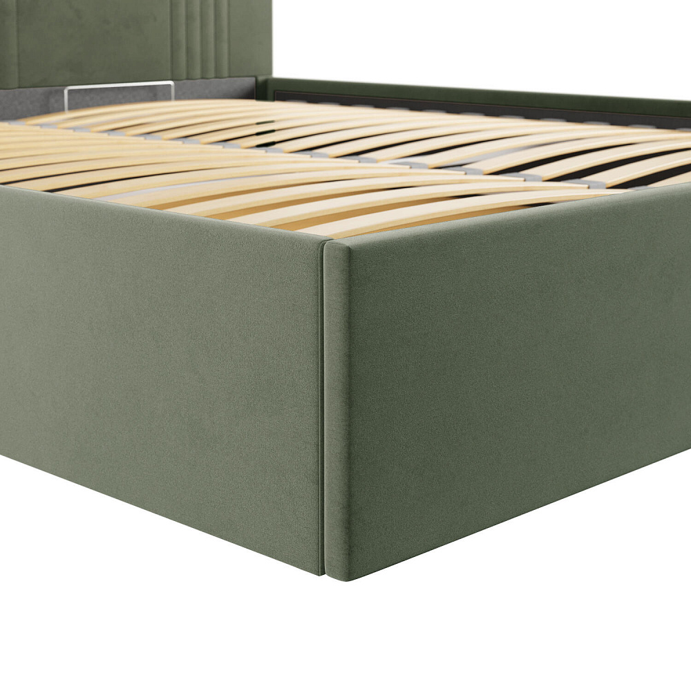Прочное подъёмное основание. Набор деревянных лат и металлическая основа поддерживают матрас, усиливая его анатомические свойства.