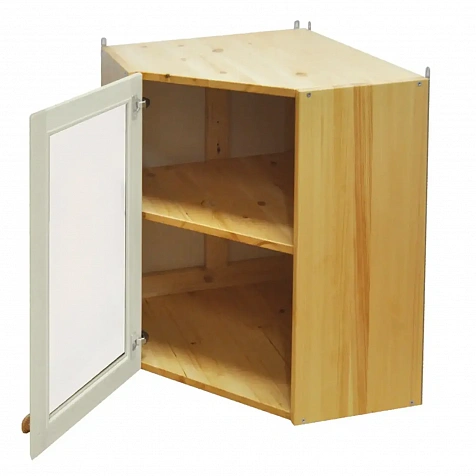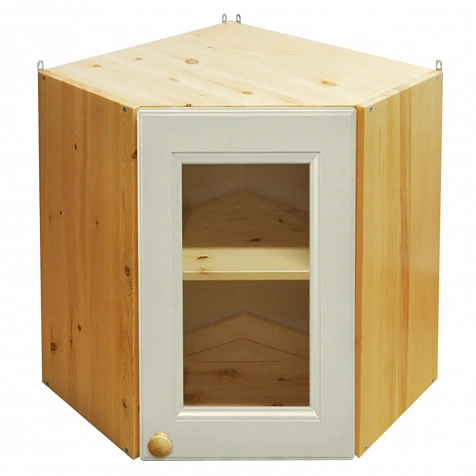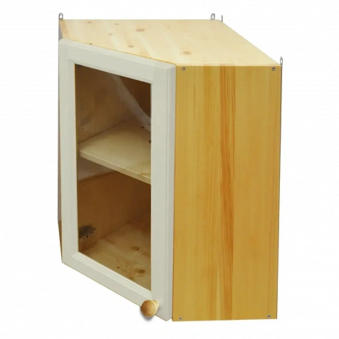 Шкаф настенный угловой Весури арт. 266/1 со стеклом лак /слоновая кость