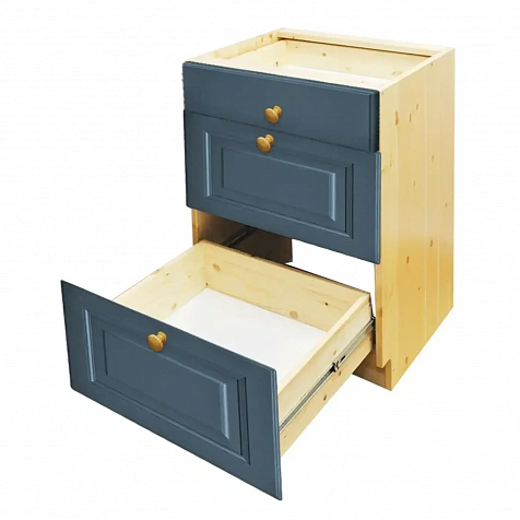 Изделие выполнено из соснового мебельного щита толщиной 20 мм. Обладает повышенной прочность и долговечностью. Все лицевые фасады, изготовлены из бессучкового массива путём ручной сортировки сырья.