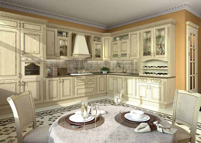 Если ваше помещение позволяет разместить большой кухонный гарнитур, а вы предпочитаете классику, то эта кухня создана, буквально, для вас! Идеальные пропорции и качество изготовления не оставят равнодушным ни одну хозяйку. Она будет радовать вас долгое время.