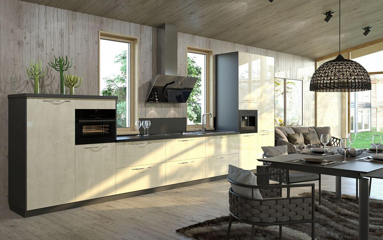Кухня Interium Модерн.91: лакированные фасады для кухни в декоре «Береза»