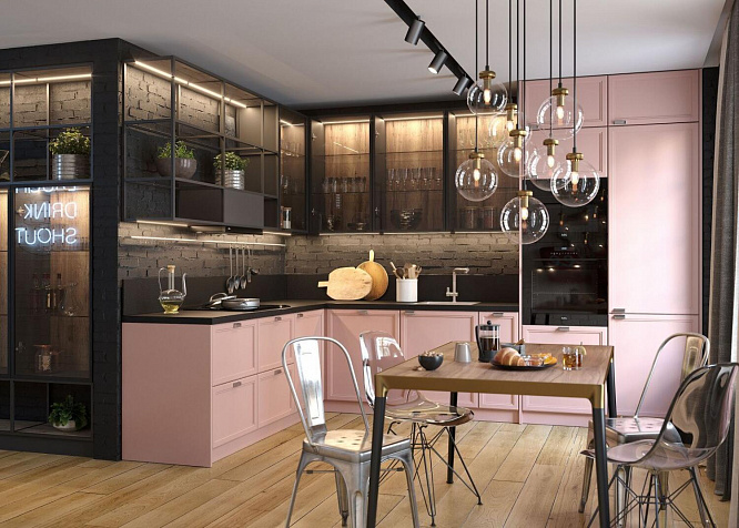 Кухня с фасадами «Урбан» из МДФ, выкрашенной матовой эмалью в цвет палитры RAL.