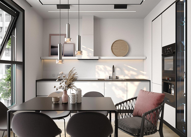 При грамотном расположении элементов можно создать отличную кухню даже в небольшом помещении. Для этого надо рационально задействовать полезный объем и не размещать лишних элементов, оставив только необходимое. Приходите за кухней в Mr.Doors!