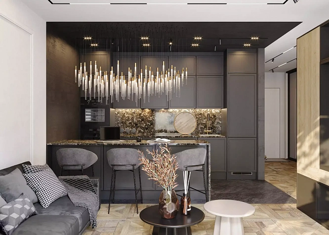 фасады – серия “Урбан” (МДФ в эмали) в декоре “Сета Графит”;