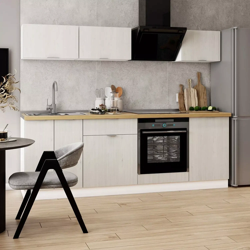 Кухонный гарнитур ЛАЙТ 182x230x60 см, ЛДСП, цвет Скандинавское белое дерево, 7 секций