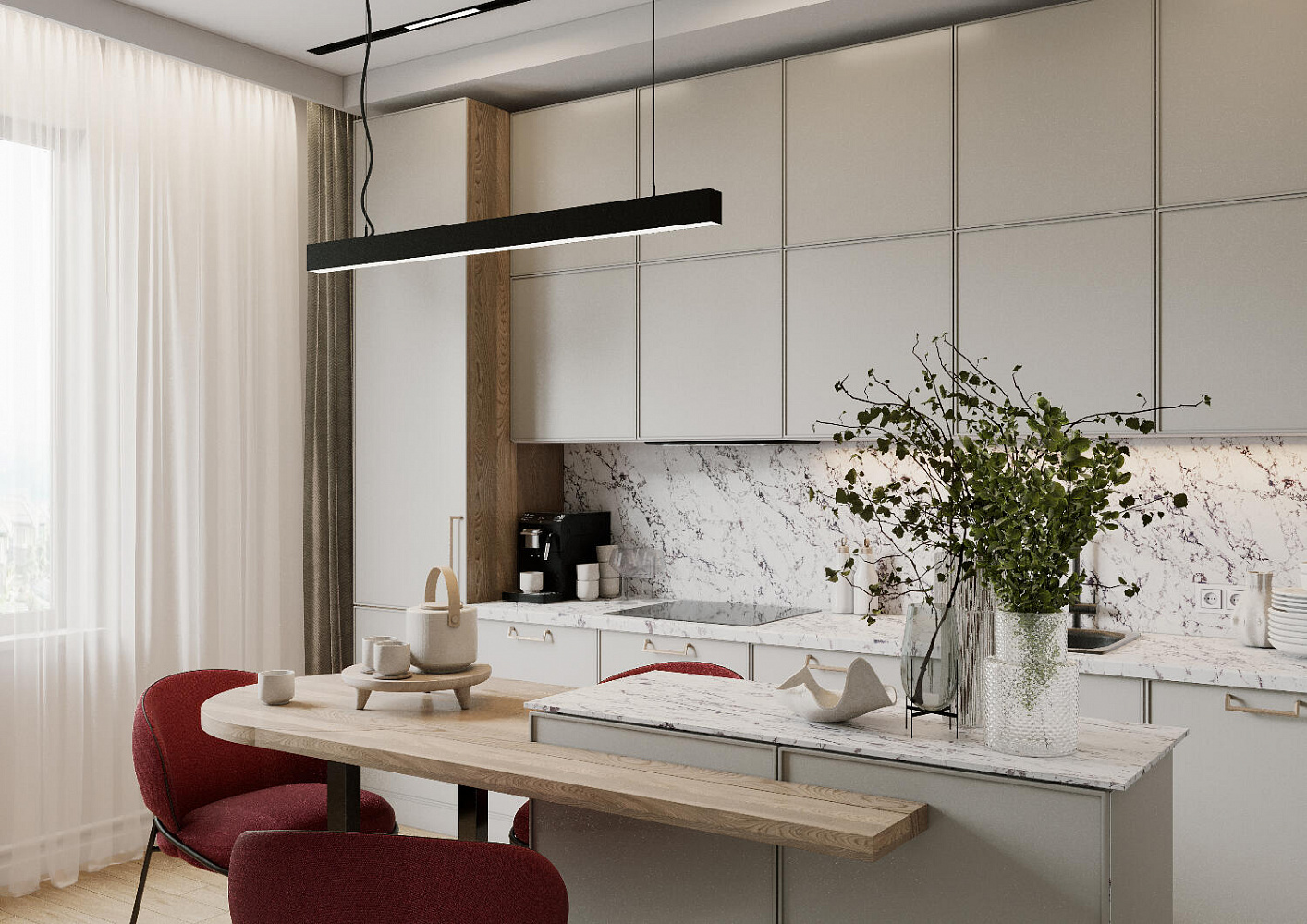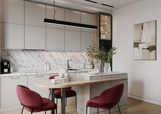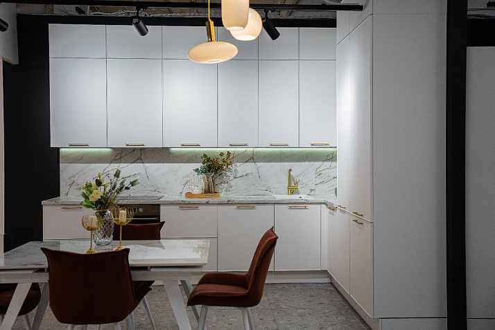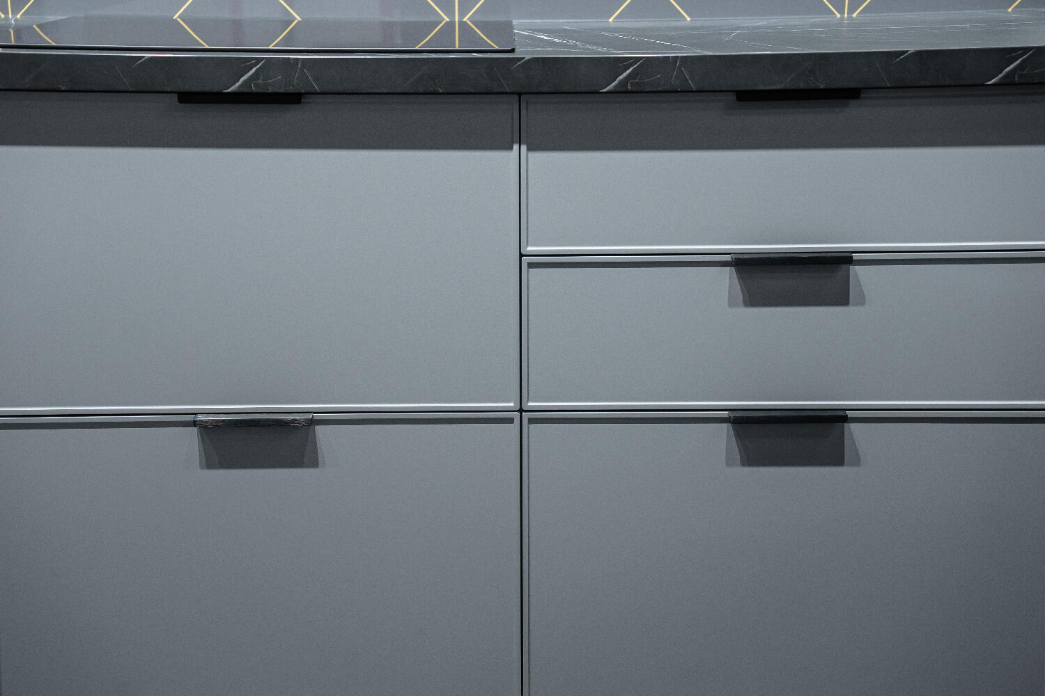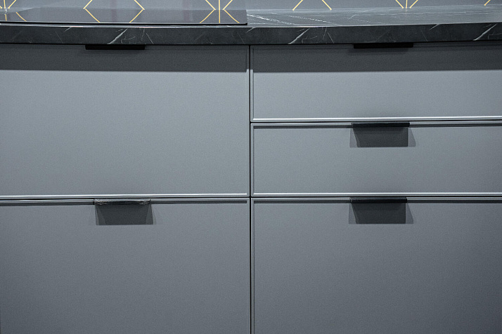 Кухня ЛАЙН с тонкой рамкой. Современная модель с изящной окантовкой фасадов. МДФ+эмаль.