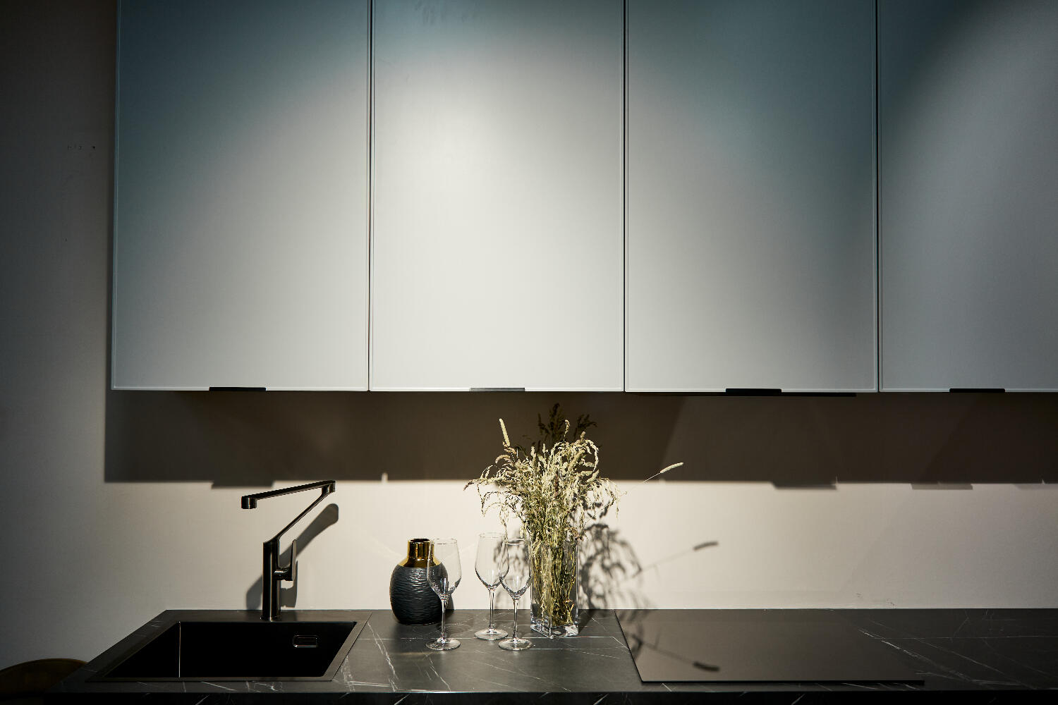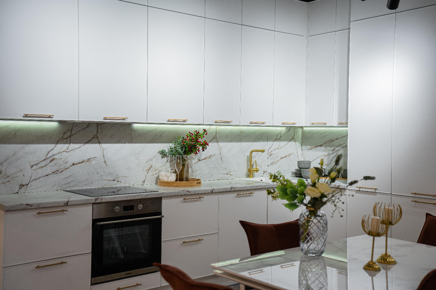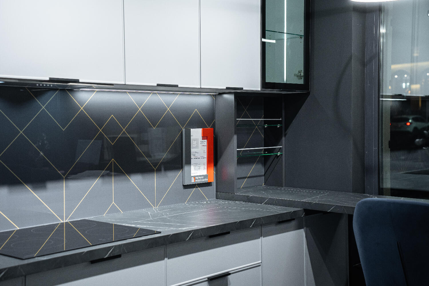 Кухня ЛАЙН с тонкой рамкой. Современная модель с изящной окантовкой фасадов. МДФ+эмаль.