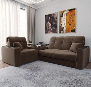 Lazurit Диван угловой с баром Камелот 1,4