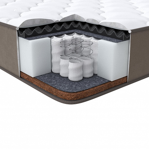 Кокосовое волокно. Наполнитель обладает высокой прочностью и упругостью. Материал дополнительно обеспечивает теплообмен и циркуляцию воздуха, не деформируется при постоянной эксплуатации матраса.