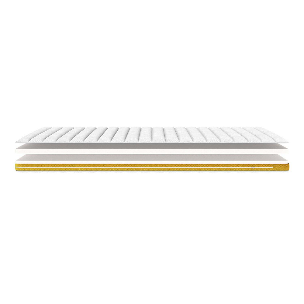 - Вязкоэластичная пена Evo Memory Pro50 высотой 3 см. Этот премиальный материал создан из синтетических полимеров с эффектом памяти формы, не впитывает запахи, не вызывает аллергии. Пена с компонентом Pro50 подстраивается под анатомические изгибы тела, распределяя поверхностное давление на тело. Поэтому ткани в организме человека не пережимаются и получают необходимые питательные вещества и кислород.