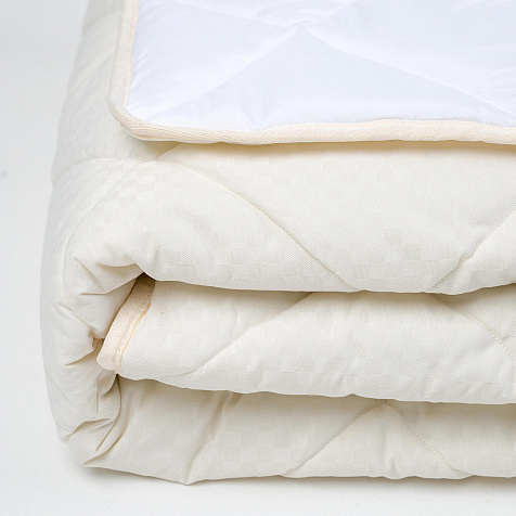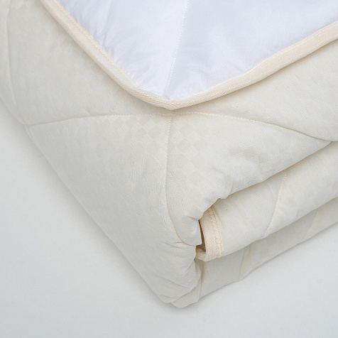 Большое лёгкое одеяло «Пралине» с плотностью 250 г/м² имеет повышенную мягкость и прочность. Соприкасаясь с телом, оно дарит неповторимые ощущения теплоты и уюта. Гипоаллергенный наполнитель из бамбукового волокна создаёт анатомический эффект во время сна, обладает антибактериальными свойствами.