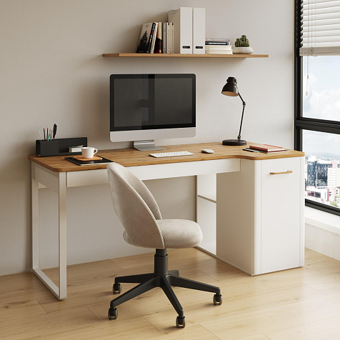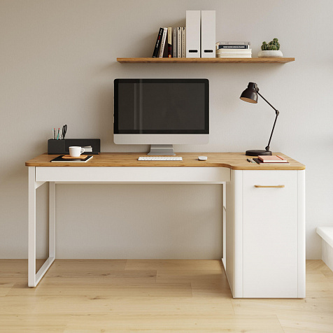 Широкий письменный стол «Кассия» станет центральной частью уютного домашнего или офисного кабинета, где можно не только продуктивно работать в обстановке непревзойденного комфорта, но и отдыхать во время перерыва. Современный дизайн модели выполнен в универсальной цветовой гамме, которая подходит к самым разным стилям оформления.