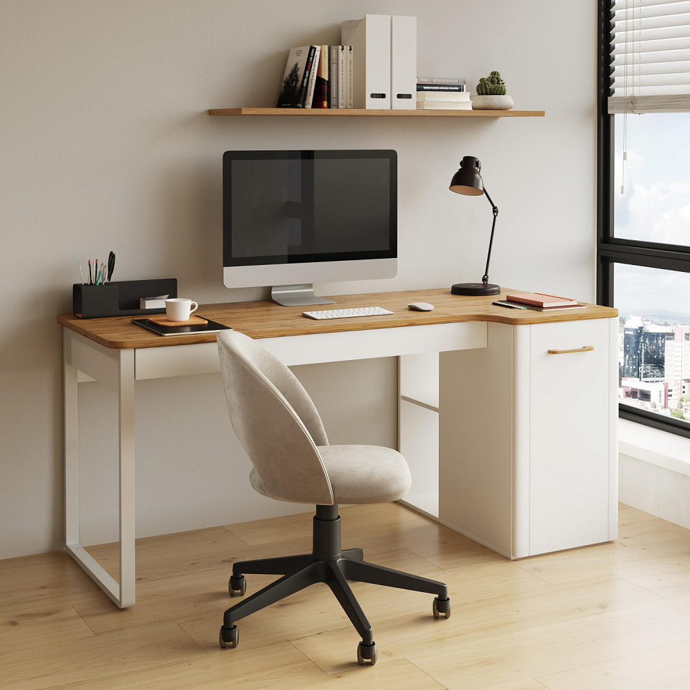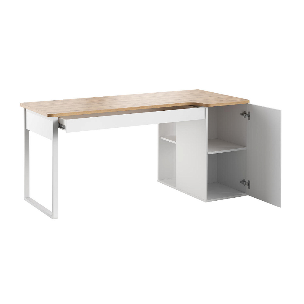 - Выдвижной ящик. Под столешницей предусмотрен широкий белый ящик для хранения канцелярских принадлежностей, бумаг.