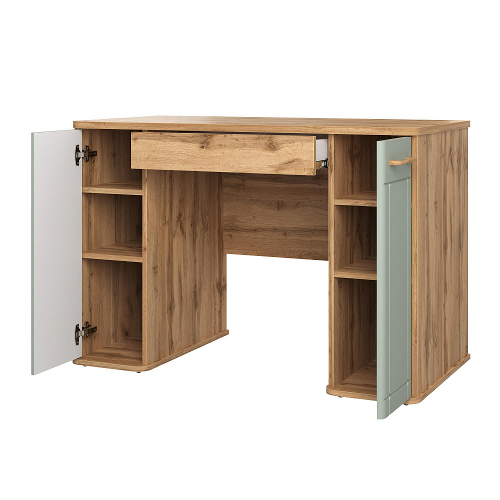 Широкий письменный стол «Кассия» с широким ящиком и двумя закрытыми отделениями с полками для школьных принадлежностей украсит современную детскую комнату. Он станет уютным и комфортным местом для выполнения домашних заданий и занятий любимым хобби. Современный дизайн модели выполнен в универсальной цветовой гамме, которая подходит к самым разным стилям оформления.