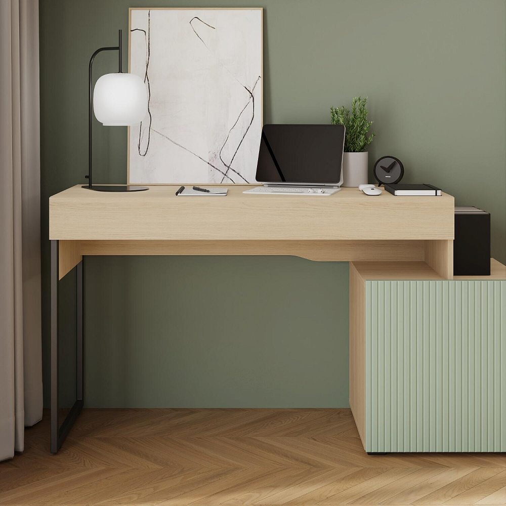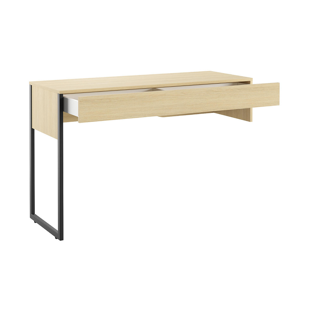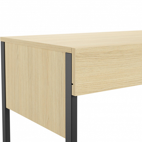 Письменный стол «Линкольн» с ящиком станет незаменимой частью уютного рабочего уголка. Модель имеет прямоугольную столешницу на двух металлических ножках с одной стороны, другой край стола крепится к крышке тумбы арт. км0558, км0560 или км0561. Лаконичный дизайн без видимой фурнитуры дополнен металлической черной опорой. Ящик станет удобным местом для хранения множества вещей.