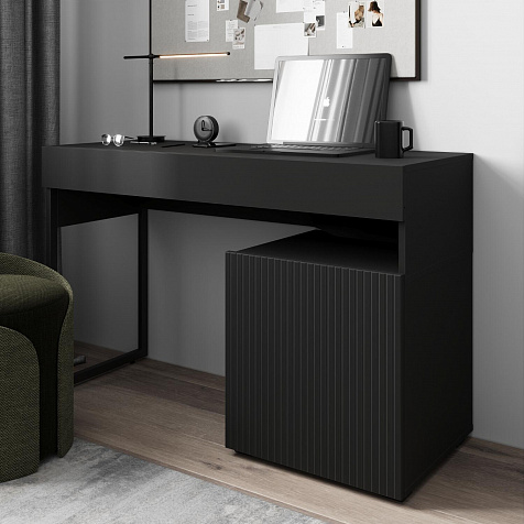 Письменный стол «Линкольн» с ящиком станет незаменимой частью уютного рабочего уголка. Модель имеет прямоугольную столешницу на двух металлических ножках с одной стороны, другой край стола крепится к крышке тумбы арт. км0558, км0560 или км0561. Лаконичный дизайн без видимой фурнитуры дополнен металлической черной опорой. Ящик станет удобным местом для хранения множества вещей.