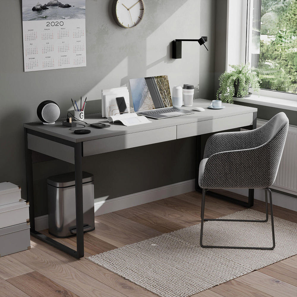 Письменный стол «Кассия» с двумя ящиками станет центральной частью уютного домашнего или офисного кабинета. Современный и лаконичный дизайн модели выполнен в универсальной цветовой гамме, которая подходит к самым разным стилям оформления.