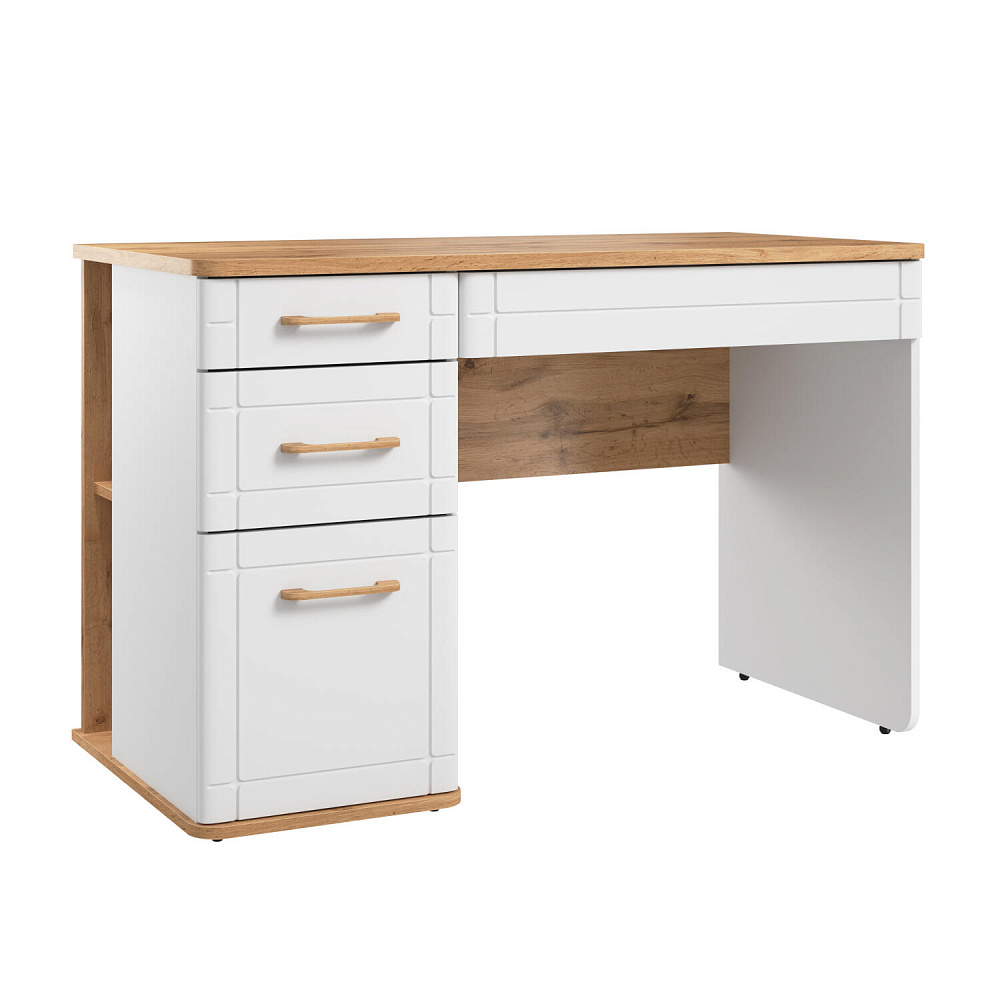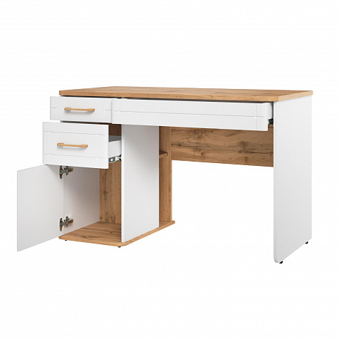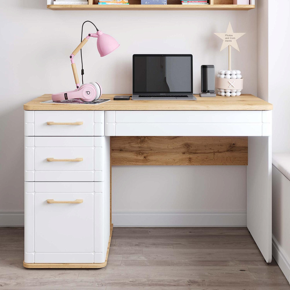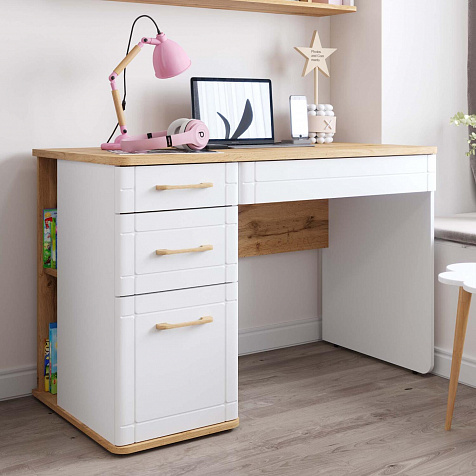 Широкий письменный стол «Кассия» с тремя ящиками и закрытым отделением для школьных принадлежностей украсит современную детскую комнату. Он станет уютным и комфортным местом для выполнения домашних заданий и занятий любимым хобби. Современный дизайн модели выполнен в универсальной цветовой гамме, которая подходит к самым разным стилям оформления.