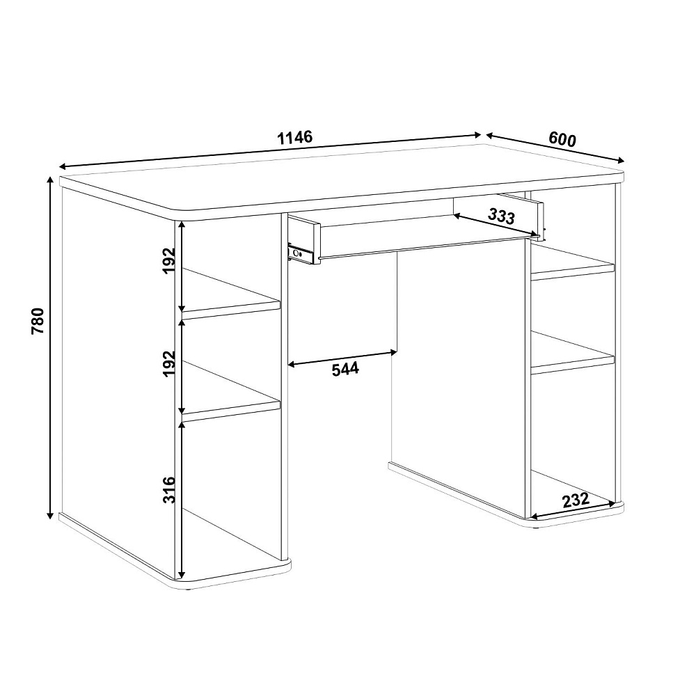 - Выдвижной ящик. Под столешницей находится широкий ящик для хранения канцелярских принадлежностей.