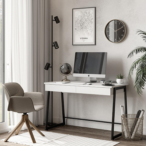 - Лаконичный дизайн. Сочетание белого оттенка и черного металлического каркаса делают модель оригинальным предметом интерьера.