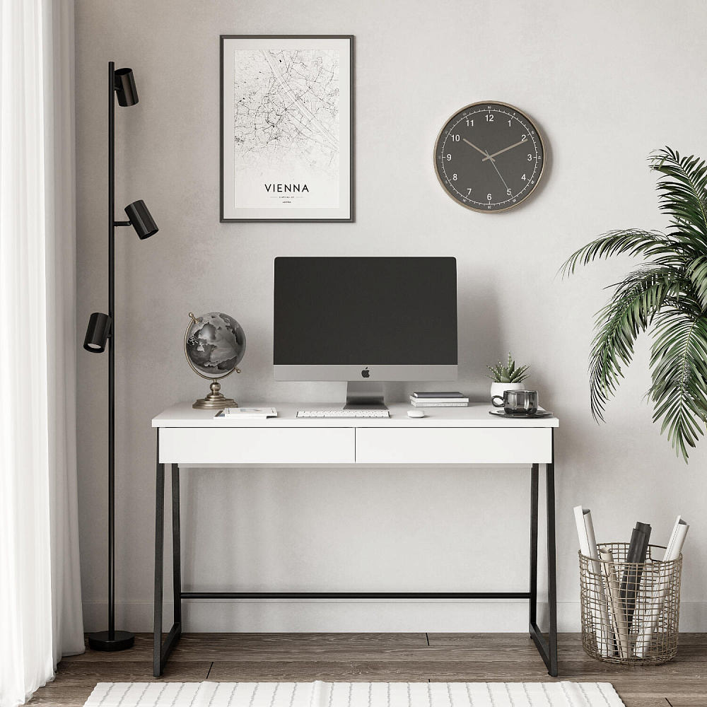 Компактный письменный стол «Кассия» с ящиками станет основным местом для комфортной работы в домашней обстановке. Благодаря компактным габаритам за столом можно комфортно расположится с ноутбуком, учебниками и тетрадями, при этом стол не займет много места в комнате. Модель оснащена двумя широкими ящиками, где можно хранить множество различных вещей. Универсальная цветовая гамма модели подойдет к любому стилю оформления помещения.