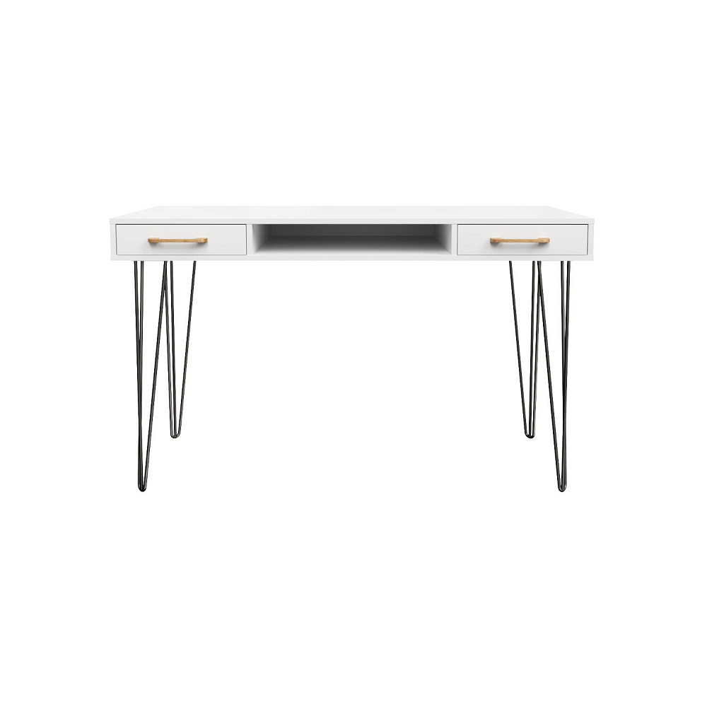 Письменный стол «Кассия» с нишей и ящиками — лаконичная модель в стиле лофт подойдет для создания рабочего места в домашней обстановке. На широкой столешнице глубиной 60 см поместится компьютер с монитором, а так же хватит места для учебников и тетрадей. Модель оснащена двумя широкими ящиками и нишей под столешницей, где можно хранить множество различных вещей. Комбинация тонких металлических опор с универсальной цветовой гаммой подойдет к любому стилю оформления помещения.