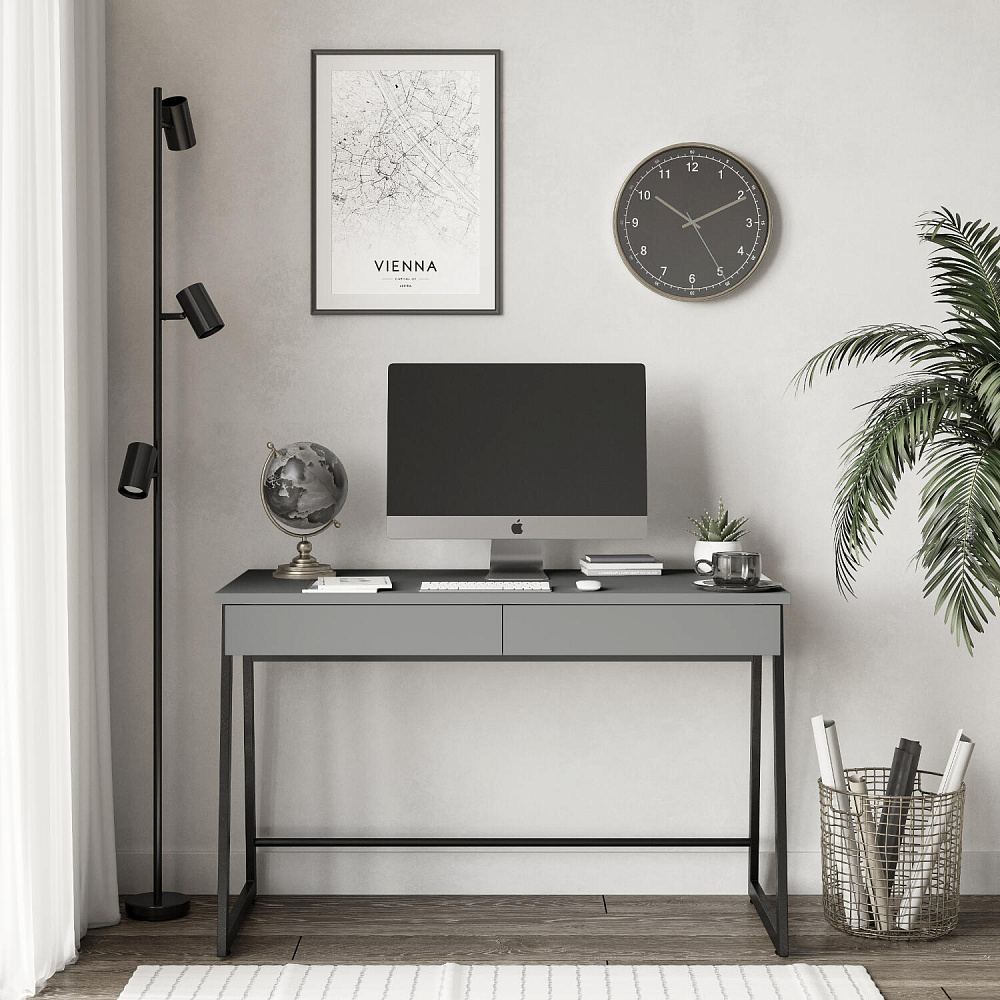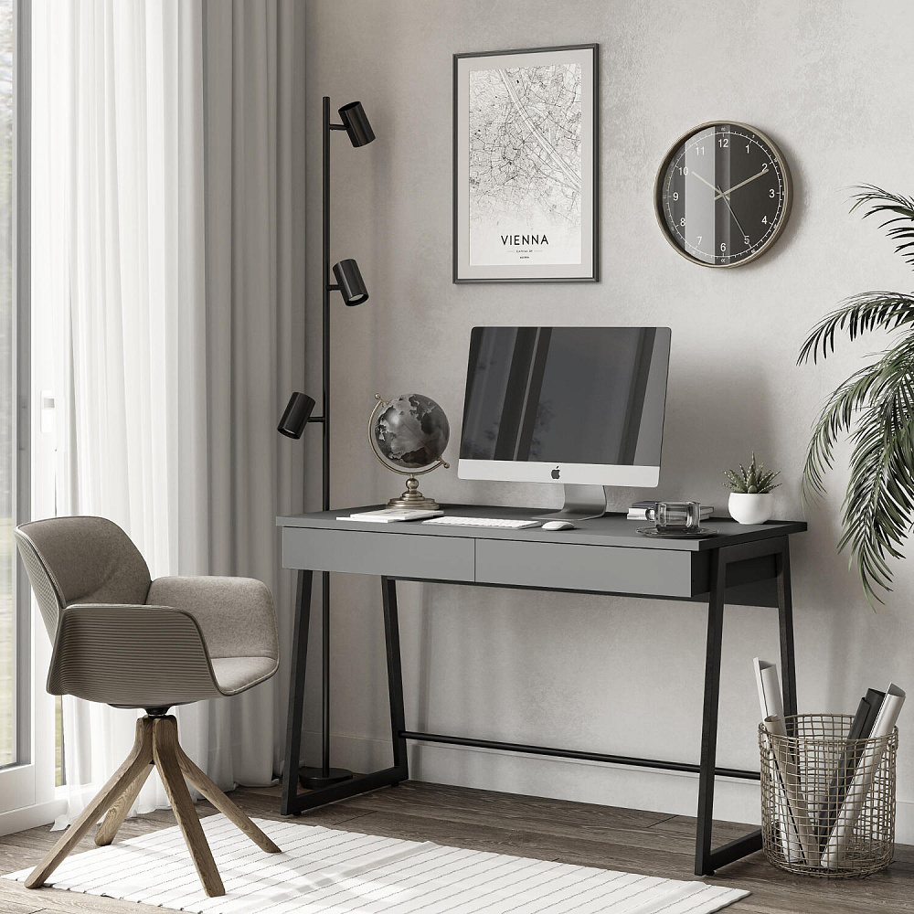 - Два выдвижных ящика. Под столешницей находятся два минималистичных ящика для хранения канцелярских принадлежностей, тетрадей и бумаг.