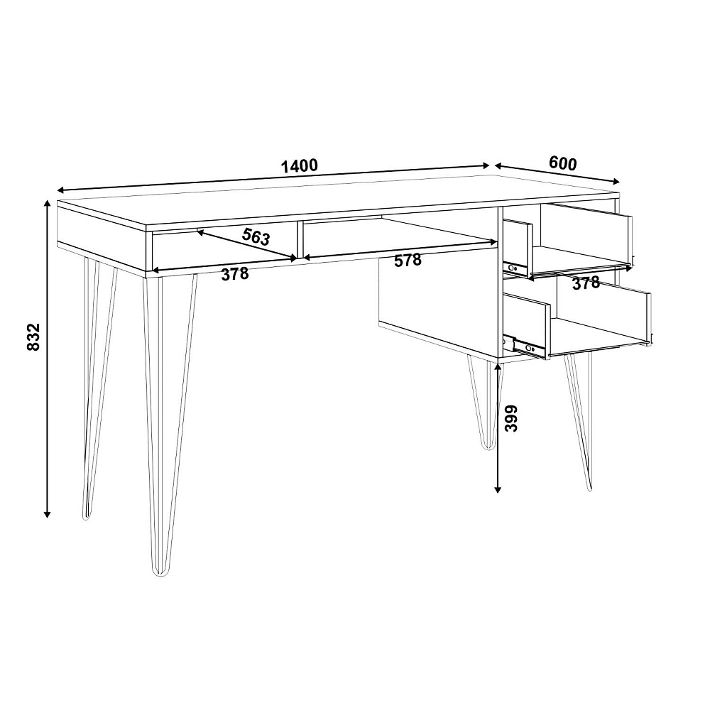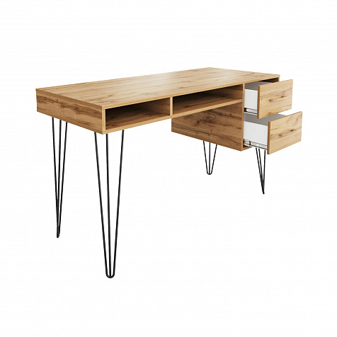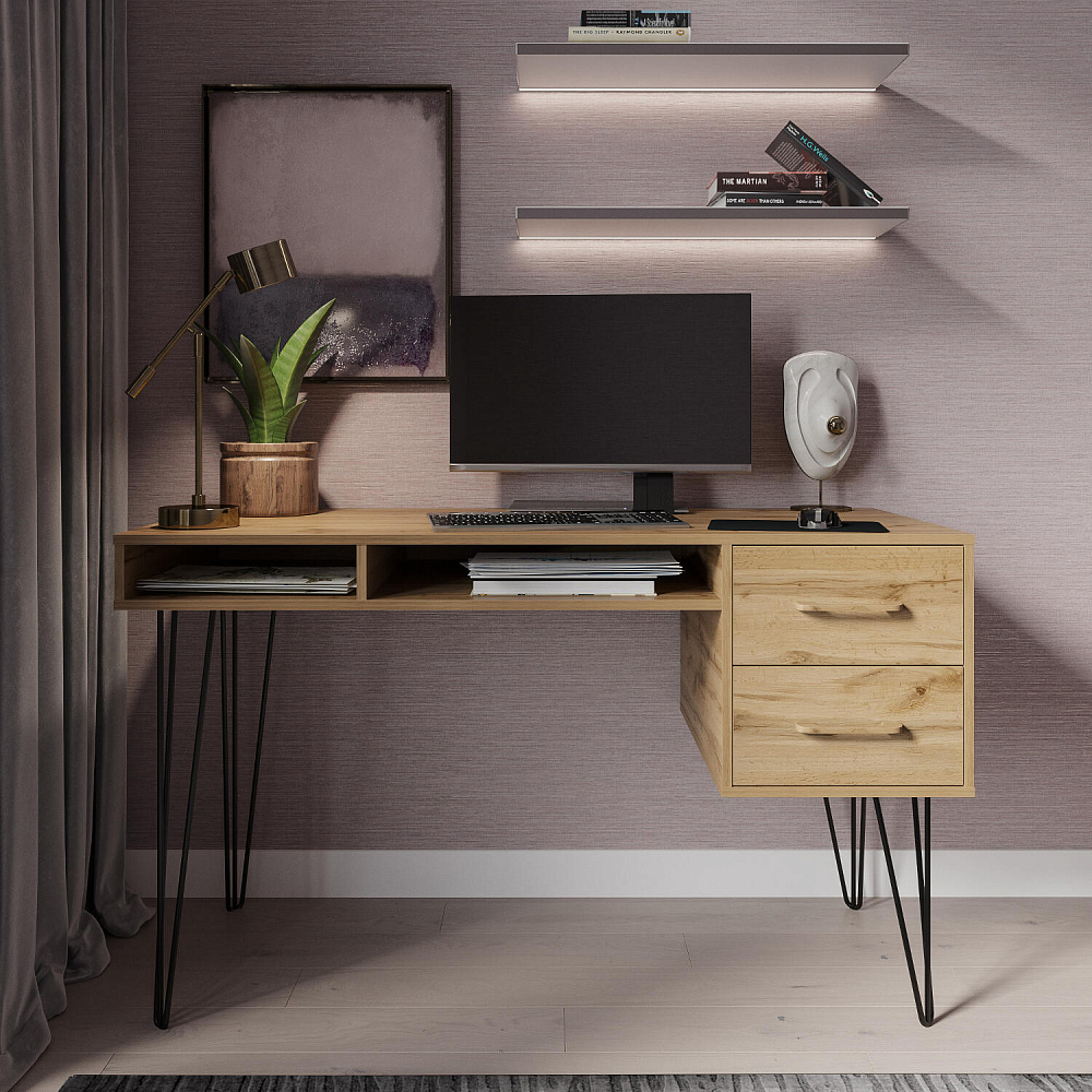 Широкий письменный стол «Кассия» с нишами и ящиками — лаконичная модель в стиле лофт подойдет для создания рабочего места в домашней обстановке. Модель глубиной 60 см станет идеальным местом для занятий творчеством и учебой. На столешнице с легкостью помещаются листы формата А2, поэтому за столом достаточно места для комфортной работы. Два ящика и две ниши подойдут для раздельного хранения вещей и помогут поддерживать порядок на рабочем месте. Универсальная цветовая гамма модели подойдет к любому стилю оформления помещения.