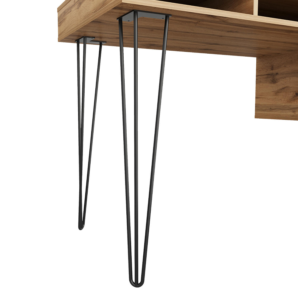 - Приятный дизайн. Сочетание древесной текстуры и тонких металлических опор делают модель оригинальным предметом интерьера.