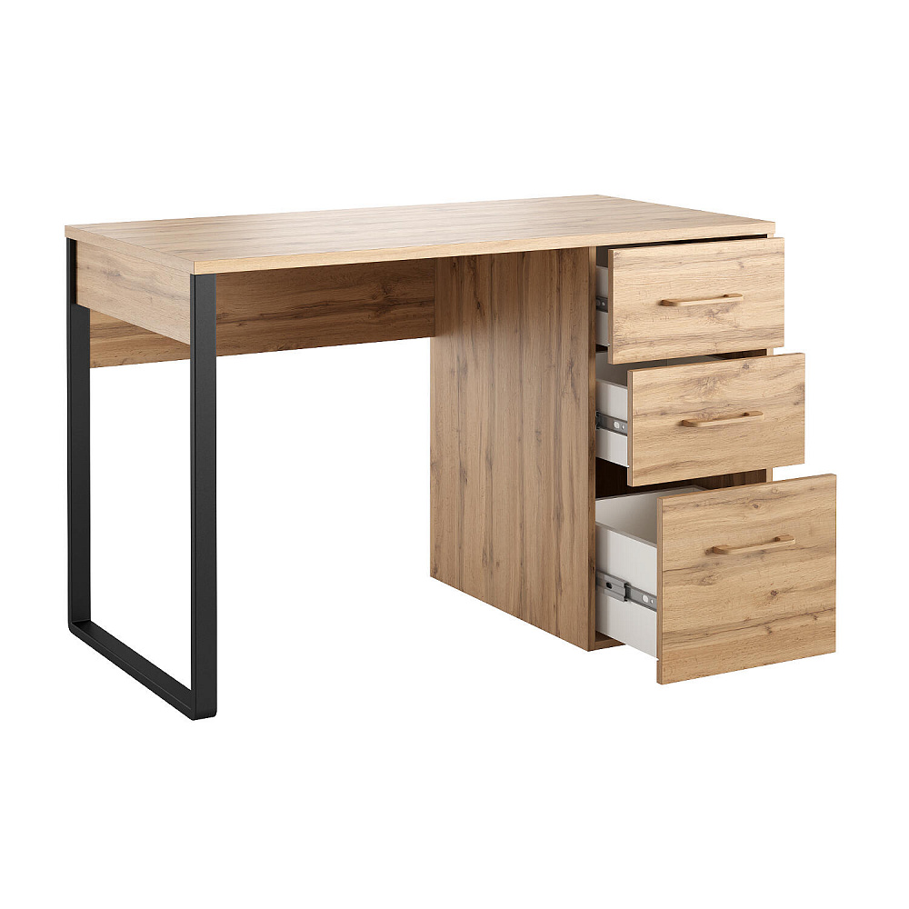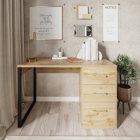 Компактный письменный стол «Кассия» с ящиками — лаконичная модель в стиле лофт подойдет для создания рабочего места в домашней обстановке. Благодаря компактным габаритам за столом можно комфортно расположиться с ноутбуком, учебниками и тетрадями, при этом стол не займет много места в комнате. Модель оснащена тремя ящиками, где можно хранить множество различных вещей. Современный дизайн модели подойдет к любому стилю оформления помещения.