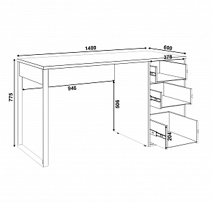 - Три выдвижных ящика. В ящиках можно хранить канцелярские принадлежности, тетради, учебники и другие мелкие вещи.