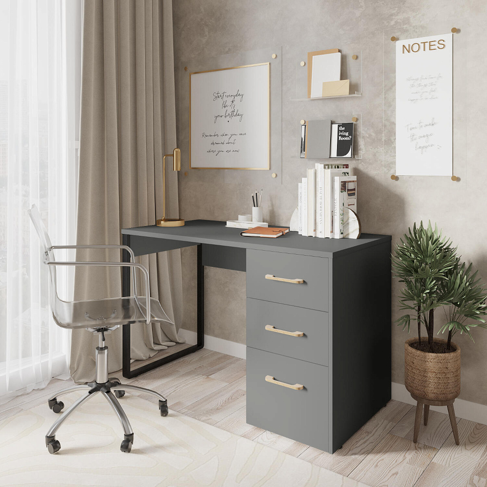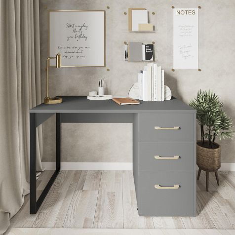 Компактный письменный стол «Кассия» с ящиками — лаконичная модель в стиле лофт подойдет для создания рабочего места в домашней обстановке. Благодаря компактным габаритам за столом можно комфортно расположиться с ноутбуком, учебниками и тетрадями, при этом стол не займет много места в комнате. Модель оснащена тремя ящиками, где можно хранить множество различных вещей. Современный дизайн модели подойдет к любому стилю оформления помещения.