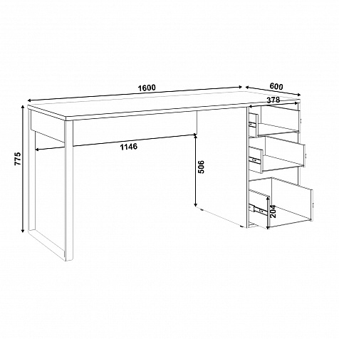 - Три выдвижных ящика помогут поддерживать порядок на рабочем месте и хранить канцелярские принадлежности, тетради и другие мелкие вещи.