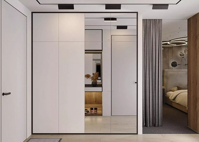 Купить прихожую с зеркальными фасадами.