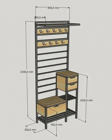 Прихожая в стиле Лофт арт. 01-04 (массив сосны + металл)