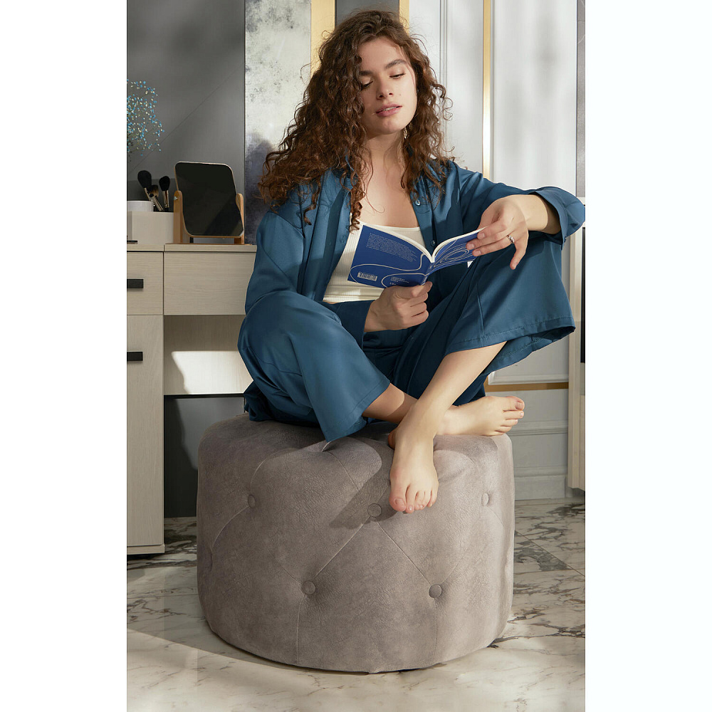 Пуф «Реген» — стильная и мягкая замена стулу в спальне, особенно если необходимо сэкономить место в комнате. Пуф выполнен из приятной на ощупь рогожки, украшен пуговицами и стяжками. Ткань отличается выразительной фактурой в виде мелких плетеных нитей. Объемное плетение придаст интерьеру чувство уюта и спокойствия.