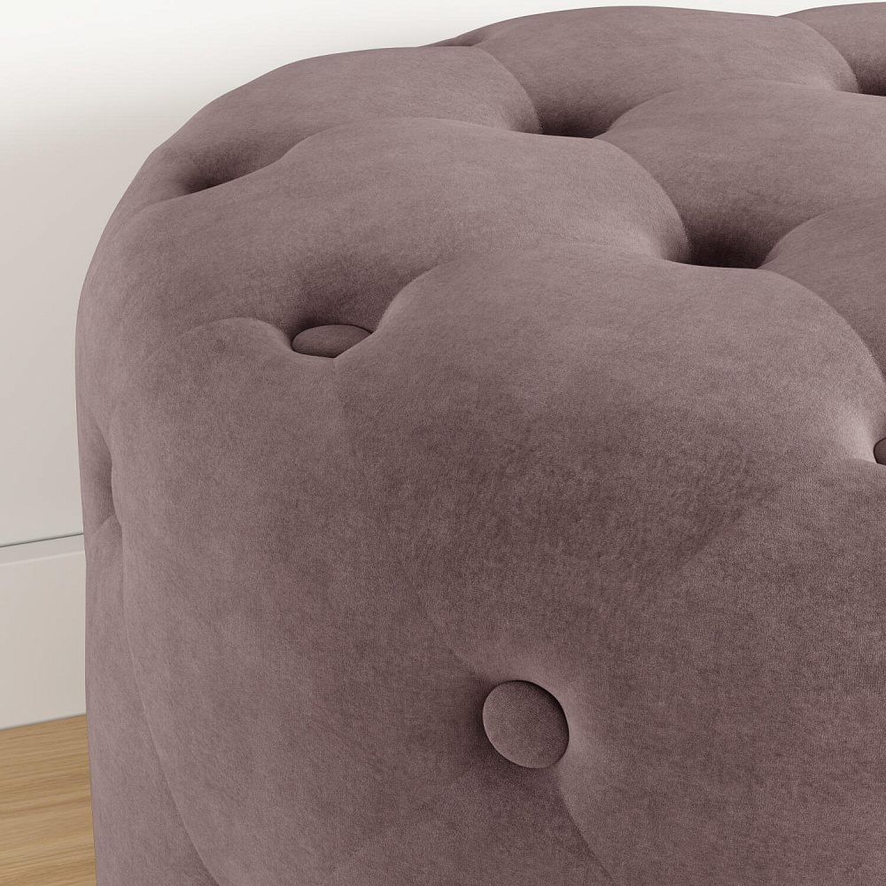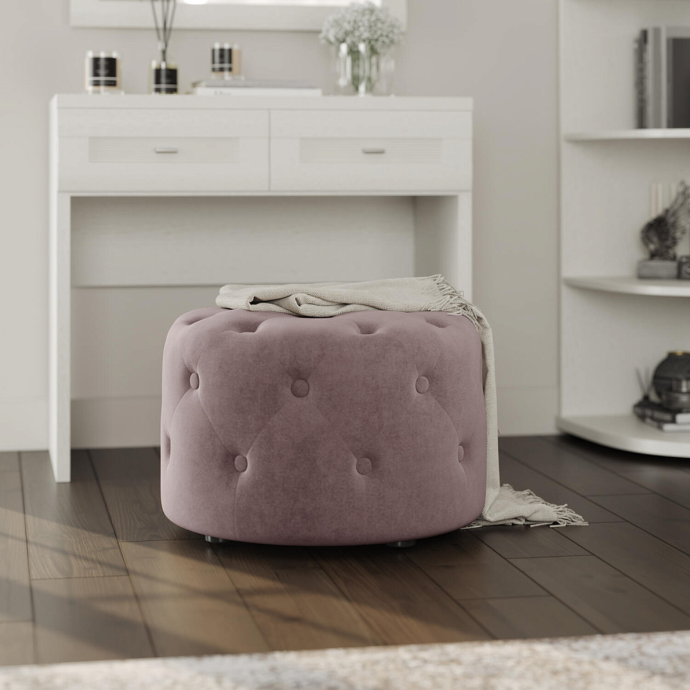 Пуф «Реген» — стильная и мягкая замена стулу в спальне, особенно если необходимо сэкономить место в комнате. Пуф выполнен из тактильно приятного велюра, украшен пуговицами и стяжками. Бархатистая ткань визуально схожа с замшей и обладает высокой устойчивостью к истиранию.