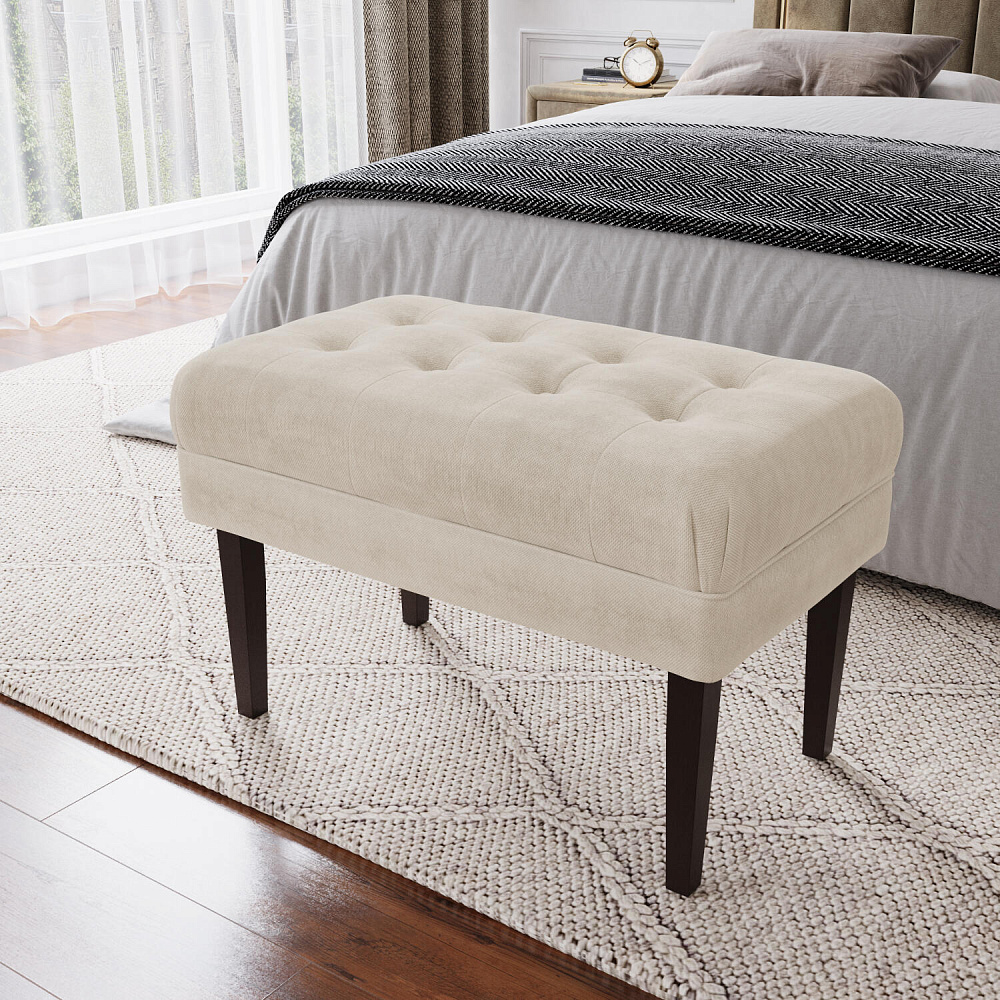 Банкетка «Шарлотта» идеально дополнит композицию вашей спальни, прихожей или гардеробной, станет удобным и функциональным аксессуаром. Основное изящество банкетке придают стачные элементы обивки и утяжка с декоративными пуговицами на мягком сидении, выполненные с использованием велюра. Массивные берёзовые ножки без труда выдерживают высокую нагрузку.