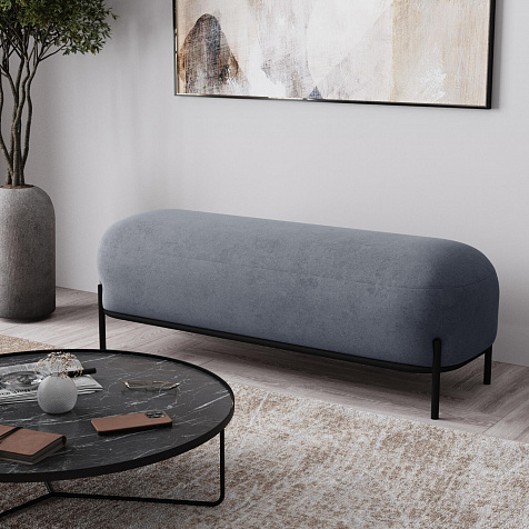 Большой пуф «Луффи» станет лаконичным украшением спальни или прихожей. Округлая форма сиденья дополнена тонким металлическим каркасом на высоких опорах, что наполнит комнату уютом и визуально облегчит интерьер. Пуф можно использовать в качестве дополнения к дивану или креслу из одноименной коллекции.