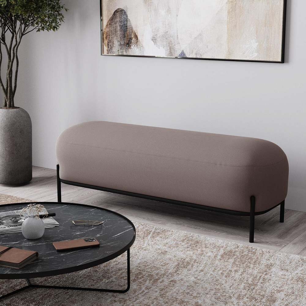 Большой пуф «Луффи» станет лаконичным украшением спальни или прихожей. Округлая форма сиденья дополнена тонким металлическим каркасом на высоких опорах, что наполнит комнату уютом и визуально облегчит интерьер. Пуф можно использовать в качестве дополнения к дивану или креслу из одноименной коллекции.