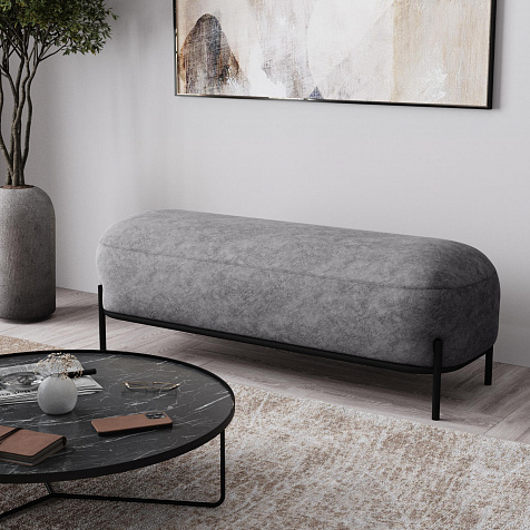 Большой пуф «Луффи» станет лаконичным украшением спальни или прихожей. Округлая форма сиденья дополнена тонким металлическим каркасом на высоких опорах, что наполнит комнату уютом и визуально облегчит интерьер. Пуф можно использовать в качестве дополнения к дивану или креслу из одноименной коллекции.